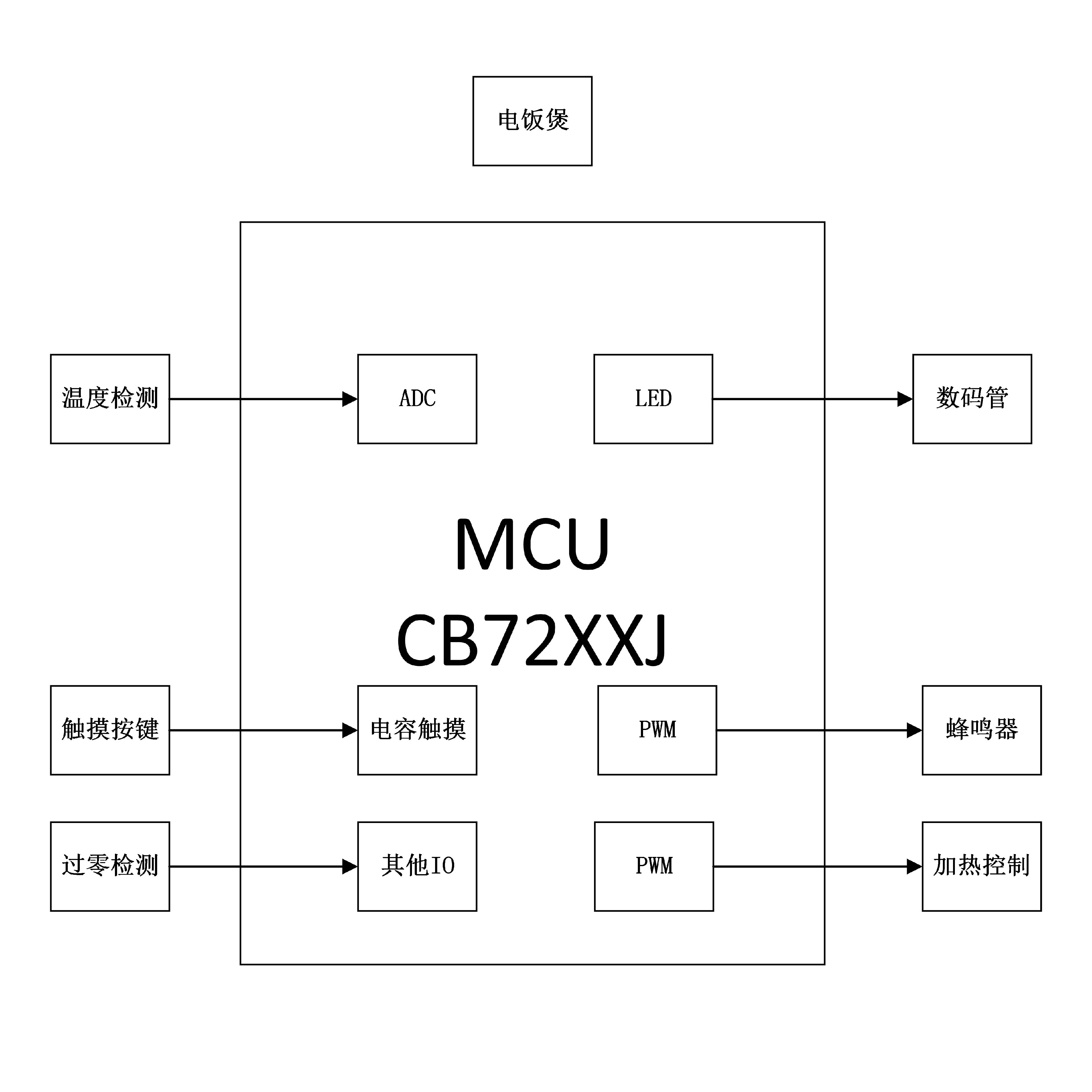 采用CB72XXJ作为主控+显示+触摸为一体的方案。可实现加热控制、温度采集、菜单选择、状态显示功能。